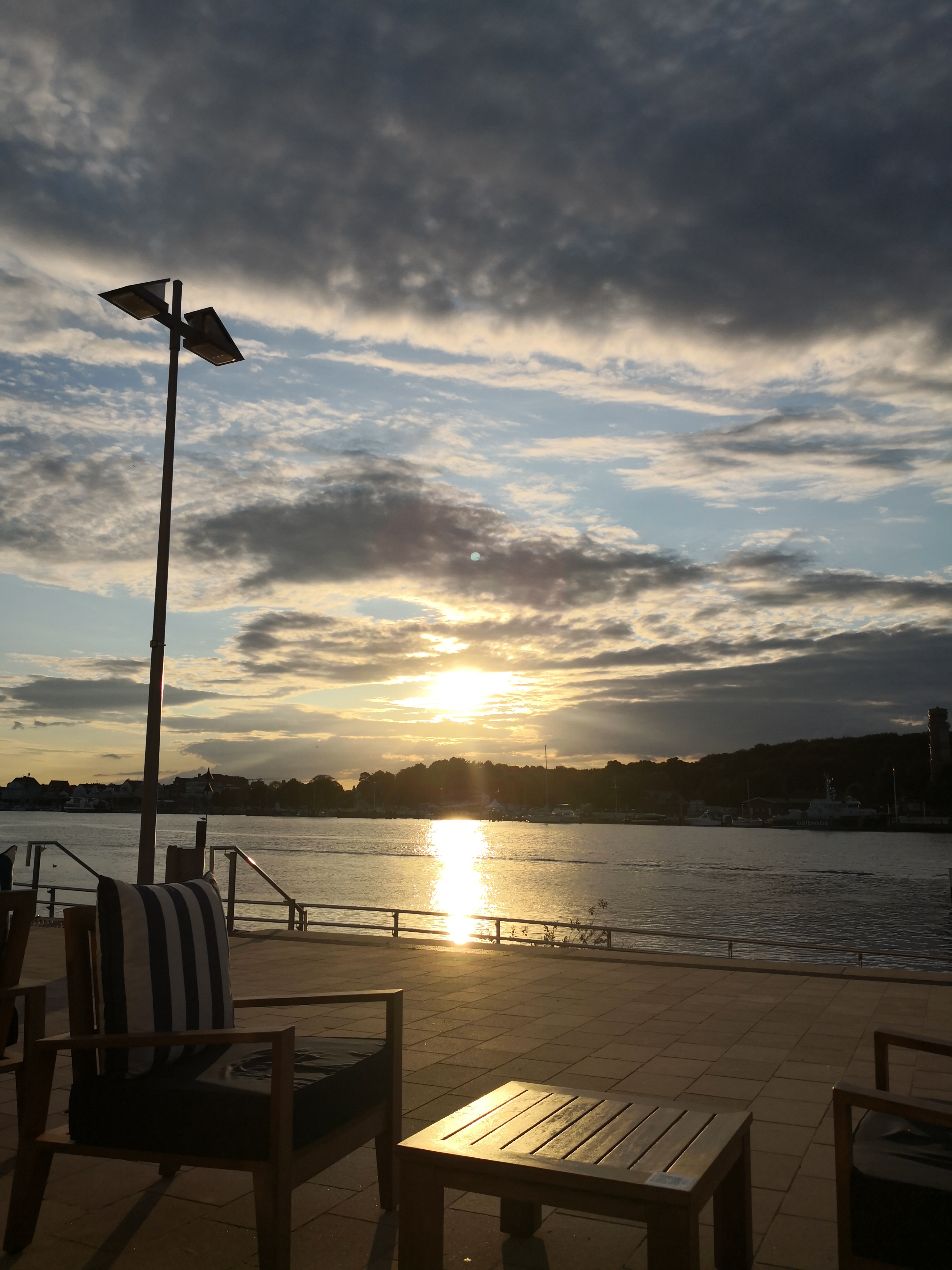 Wir waren in Travemünde und haben am wunderschönen Hafen gewohnt der uns zauberhafte Sonnenuntergänge schenkte.