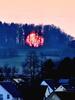 Gesehen habe ich die untergehende Sonne bei einem Abendspaziergang in Bad Waldsee im Jan. 2025. Man meint im Wald verbirgt sich ein Feuerball.
