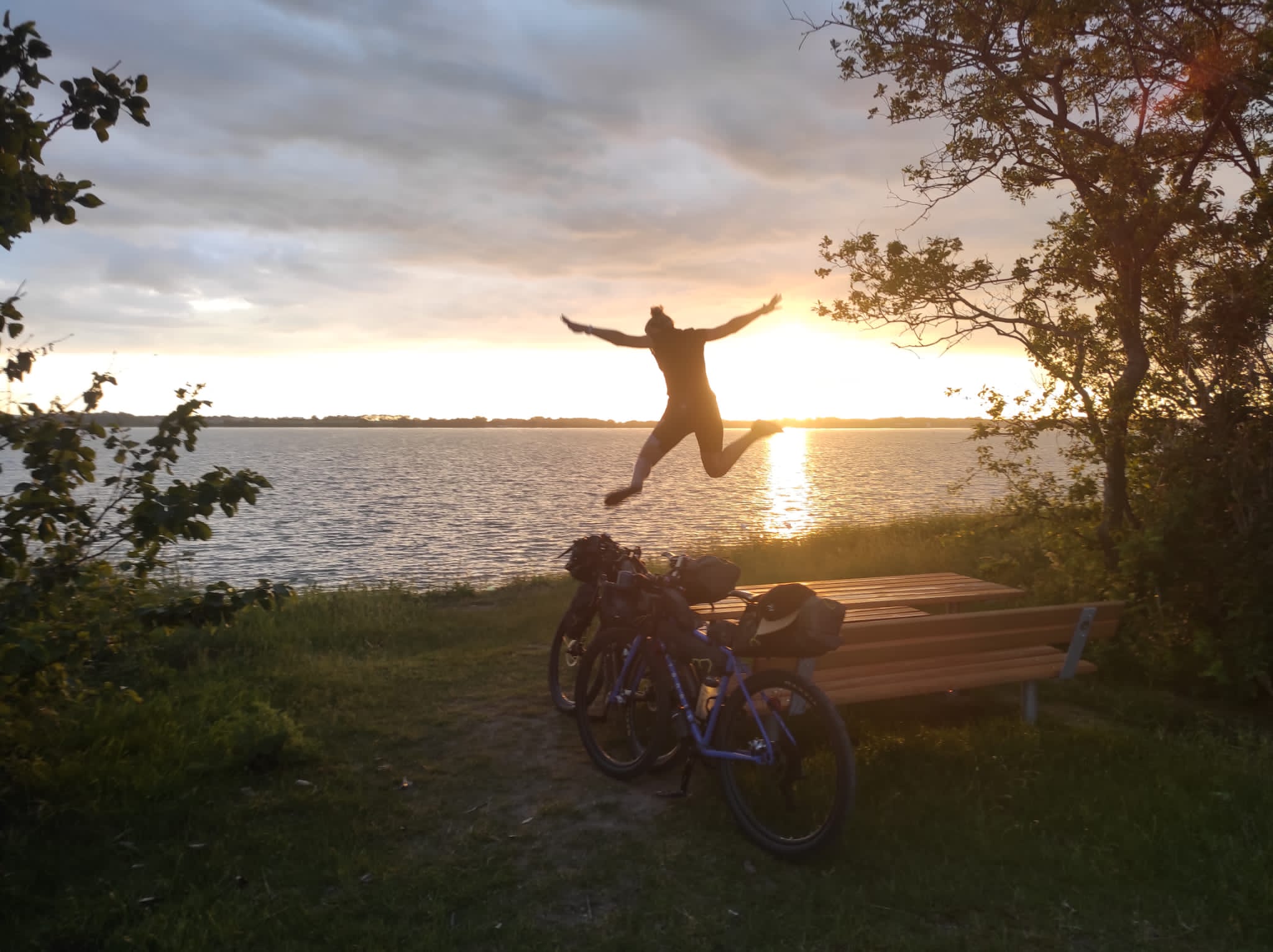 Das Foto entstand bei einer meiner ersten Bikepackingreisen an der Ostsee. Ich hätte es früher niemals für möglich gehalten, dass ich durch das Fahrrad fahren meinen Freund kennenlernen würde und es mir einmal so viel bedeuten wird. Dieses Foto verkörpert einfach den Kern des Lebens für mich. Es sind die kleinen Dinge im Leben, die mich glücklich machen. Momente in denen ich frei und unabhängig bin. Das Fahrradfahren gibt mir so viel. Es ist ein Abenteuer - so wie mein Leben selbst. Rad fahren beim Sonnenuntergang, den Wind in der Haaren spüren, die Sonne auf der Haut fühlen - was gibt es Schöneres?